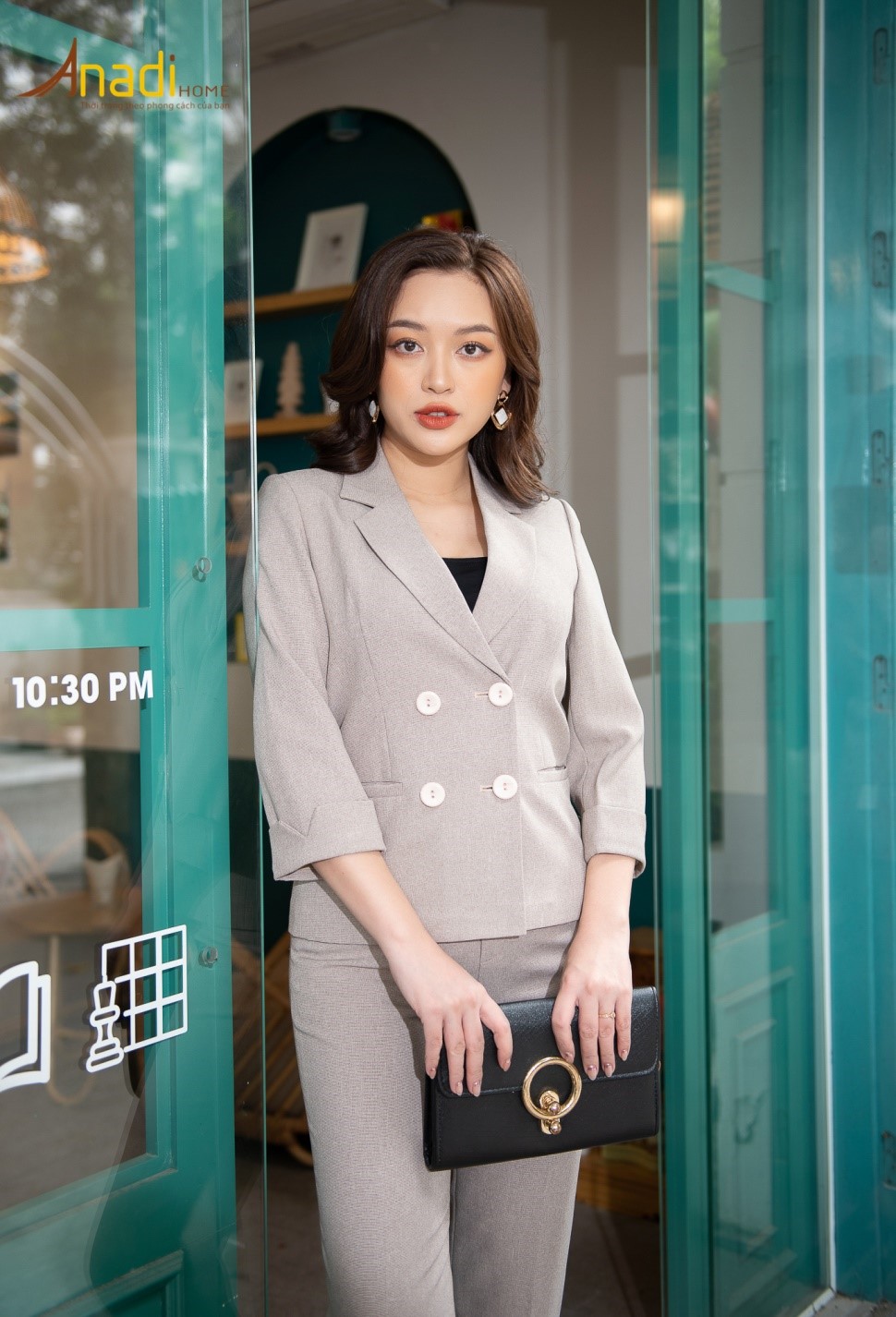 Bộ vest màu ghi sáng sang trọng rất thích hợp để diện đứng lớp, thiết kế tay lửng trẻ trung thu hút mọi ánh nhìn.