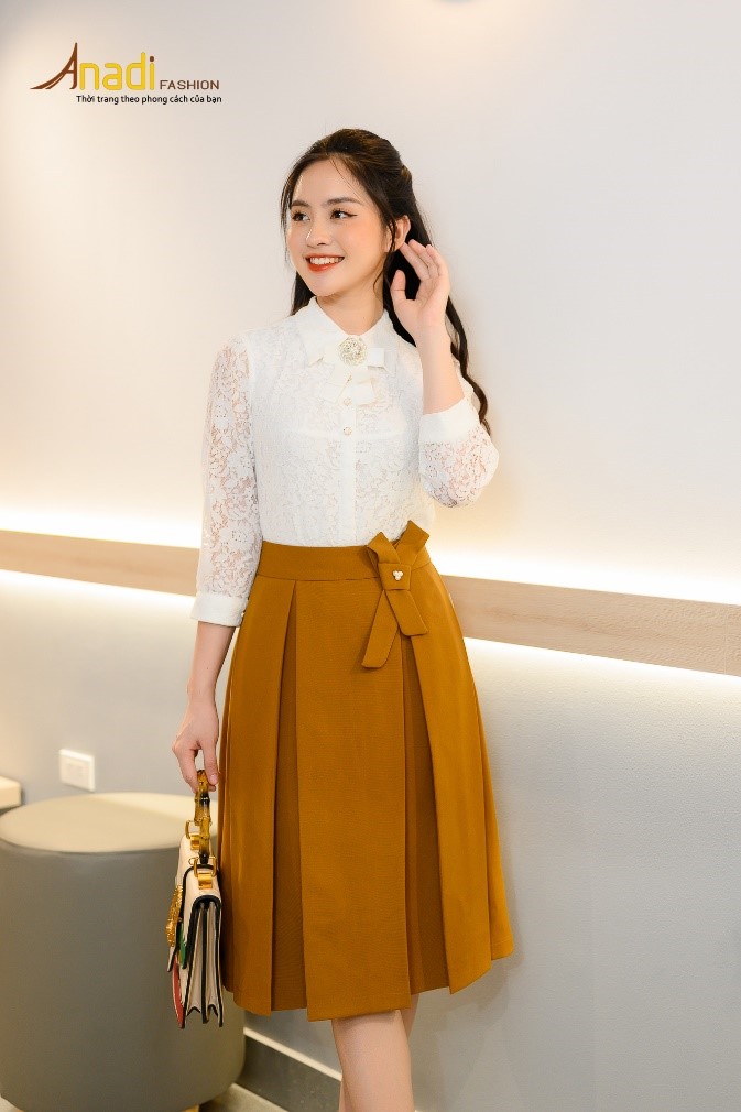 Nếu bạn đang tìm kiếm một set đồ bánh bèo điệu đà nhưng vẫn tạo cảm giác lịch sự thì chân váy dáng A và áo sơ mi kiểu chính là sự lựa chọn dành cho bạn. Sự kết hợp này sẽ mang đến cảm giác dịu dàng, nữ tính cho nghề GIÁO VIÊN. Cùng ngắm những thiết kế của Anadi trong sự kết hợp này nha.