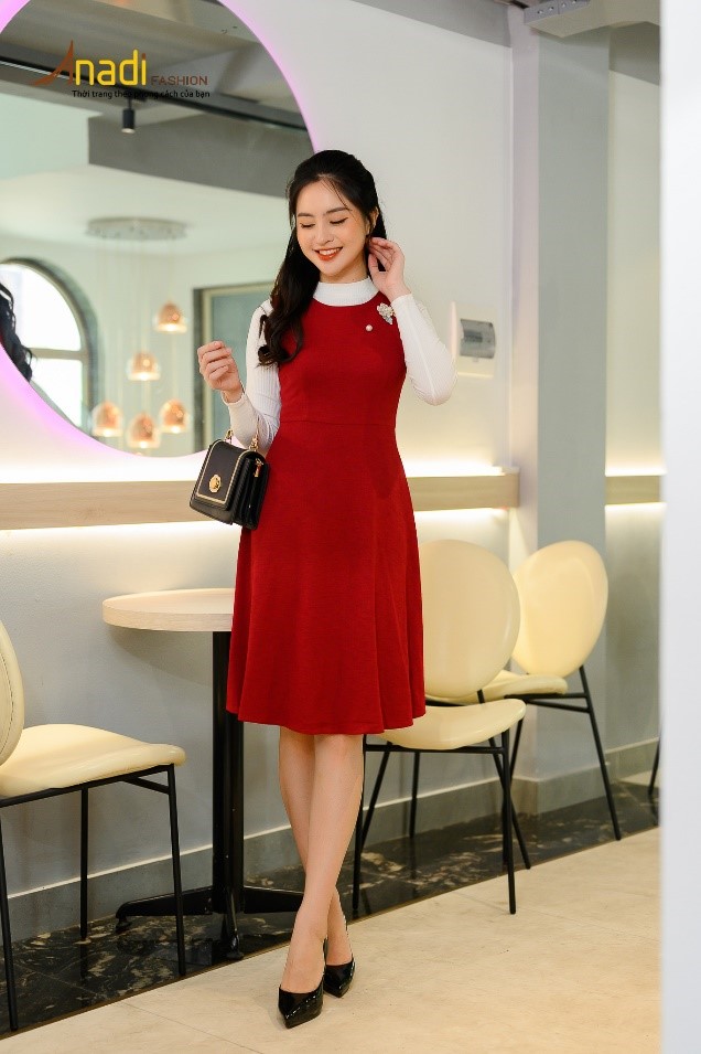 Tại Anadi còn có những mẫu váy ôm với chất liệu nhung Hàn dày dặn để mặc mùa Đông. Thiết kế độc đáo với hàng cúc bọc là điểm nhấn cùng kiểu váy ôm tôn dáng người mặc